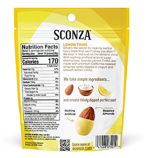 Roasted almonds thinly covered in yogurt and lemon cream.